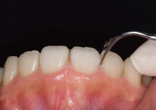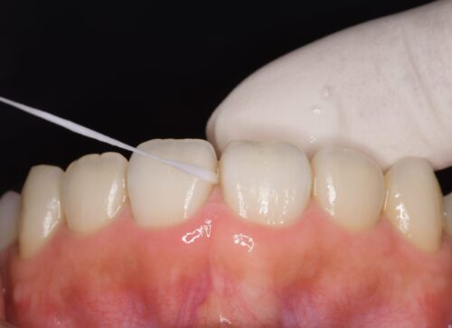 フロスや歯間ブラシを使用して歯と歯の間の汚れを除去していきます。