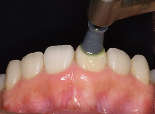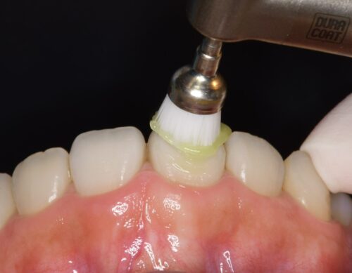 ブラシやラバーカップを使用して歯の表面に付着しているバイオフィルムを除去し、ツルツルな歯に仕上げていきます。